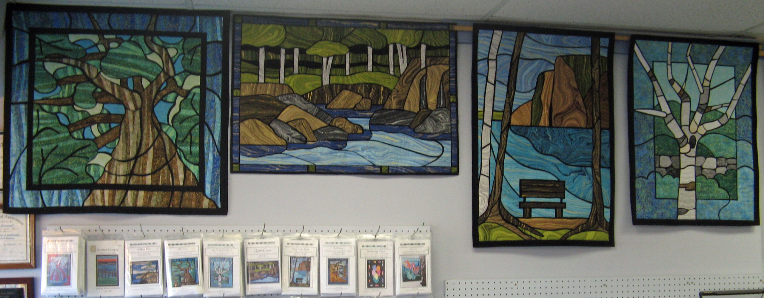 There’s this gorgeous little shop just outside Ottawa called Flair With Fabrics. Nestled at the crossroads in the village of Chesterville, it is chock full of ideas, samples, notions and FABRIC! Ruth has the most complete selection of Northcott fabrics I’ve ever seen and she has lots of other neat lines as well. In addition to all this, she carries (and kits) almost all of my patterns! She is also in the process of making the Fabulous Flowers Block of Month sample for her shop-the program will be starting there soon.